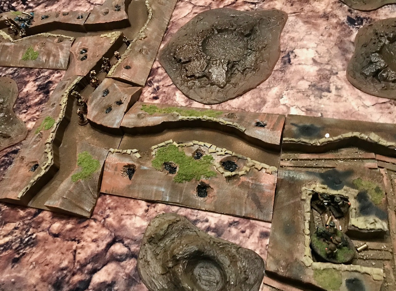 What followed was mayhem, mills bombs and mirth. The terrain was awesome (trenches courtesy of Alan, who was sadly absent) and the effect were both very impressive and great to play on.